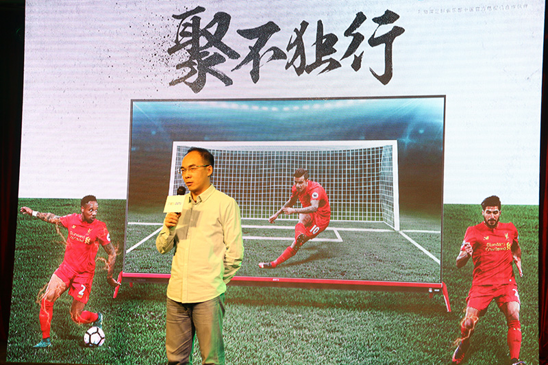 在活动开启前,聚力传媒副总裁殷宇安先生代表活动主办方发言。他首先盛赞了利物浦足球俱乐部,在他眼里,利物浦凭借着百折不挠、永远心怀希望、追寻梦想的精神赢得了国内近百万KOP球迷追随;受这样的精神感染,作为国内最早开启体育事业的PPTV聚力,才得以结缘这支杰出球队并展开战略合作,这才有了当天这台PPTV电视利物浦定制版的诞生。
