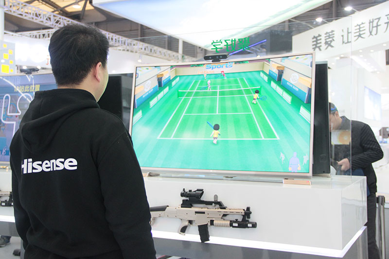 在海信最新发布的MU7000系列ULED电视产品体验区,可以体验到最新全场景手势识别操控。3D外设摄像头可以对人体手部动作进行精确的捕获和识别,不用遥控器也可以玩转功能强大的智能电视。此外还有智能健身房、全面枪战、疯狂赛车体验区,海信智能电视的颠覆体验让电视这块大屏充满了活力和无限想象空间。