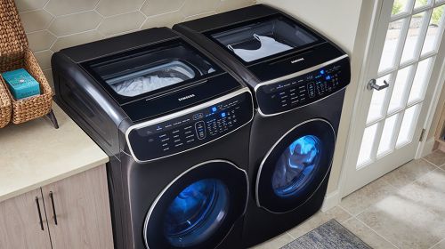 三星 FlexWash™+ FlexDry™洗衣机包含了两台洗衣机加两台烘干机,一共四大独立单元,每一个独立的洗衣单元都囊括了能够处理日常洗衣需求的独特功...
