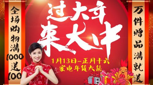 春节模式已经开始了,大中为此精心筹备的春节大让利活动也已火爆开启,全场购物满1000送100(电子现金)、万件赠品满就送大波福利来袭,引爆大中春节。...