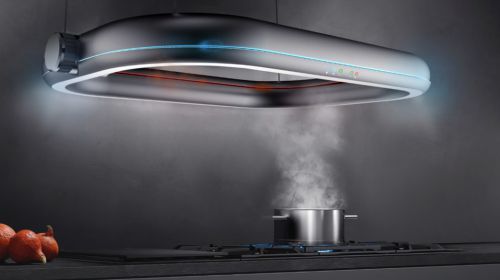乍看之下怎么也看不出这是一台抽油烟机 这不就是个椭圆的游泳圈么 抽进来的油烟往哪送呢 老外为什么要设计这么个奇怪的家伙 效果图上能看到的是 整个油...
