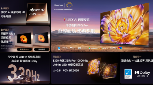 RGB-Mini LED电视同款芯片,光色同控引领显示技术变革 E8Q Pro全新升级黑曜屏Ultra:深邃本色,低反标杆 全球首发330Hz系统级高刷,无延迟...
